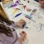 Plain peg dolls, selection of felt tip pens, scissors, small craft embellishments, glue gun, prayer cards and mini organza bags.