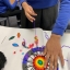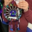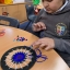 Firstly, make your prayer catcher by colouring the wooden circles (or circles made from paper plates). Next you need to choose some yarn to sew the small middle circle to the large outer circle. Then cut 4 lengths of yarn, in the colour of your choice, and tie them to the bottom of the larger circle. Now thread some beads onto each of the 4 lengths of yarn. To secure the beads, thread one of the leaves onto the bottom and tie them on. To complete your prayer catcher, you can add buttons, beads and other art and craft embellishments around the larger outer circle. Always have an adult to support when using a glue gun. Thread a piece of yarn through a hole in the top, so that you can hang your prayer catcher. You can use your prayer catcher by writing prayers and slotting them in the web part, or just by sitting and reflecting on the colours, shapes and words, as your prayer catcher hangs in a place you have chosen.
