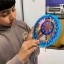 Wooden circles with holes (or paper plates with holes punched), felt tip pens, selection of different coloured yarns, selection of beads, buttons, embellishments, scissors, glue gun, 4
