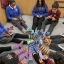 A pair of stripy socks, sock template for writing down your feelings or prayers, pen, felt tip pens.