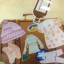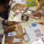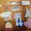 A small toy suitcase, photocopy of a picture of a suitcase, felt tip pens, pens, pencils, scissors, paper and a picture of a luggage tag.
